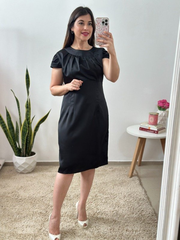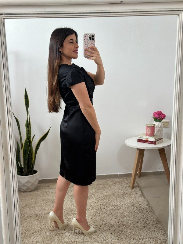 Precioso vestido importado de calidad increíble, elaborado en material con spandex. Con pliegues en la parte superior, corte en cintura y cierre en espalda.