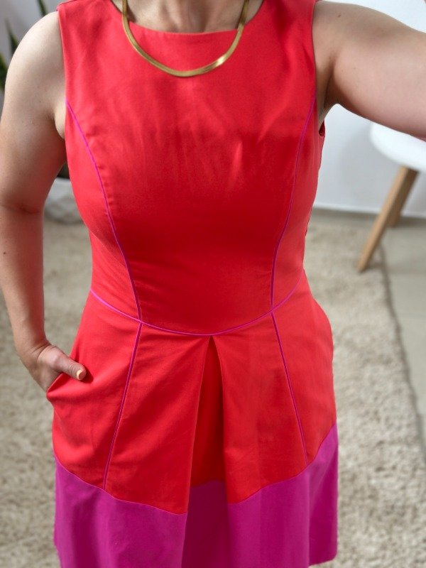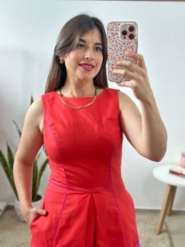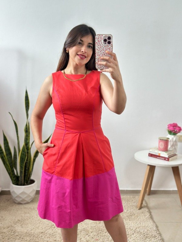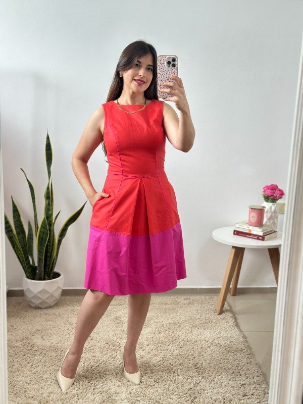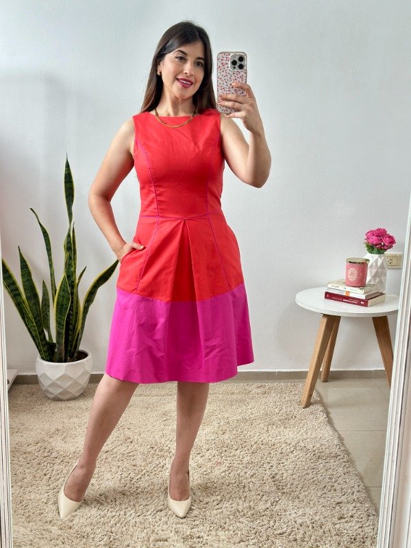 Precioso vestido importado de calidad increíble, elaborado en material con spandex simil gabardina. Con detalle de tabla central en falda, bieces y cierre invisible en espalda. La mejor parte: tiene bolsillos. un modelo sumamente original.