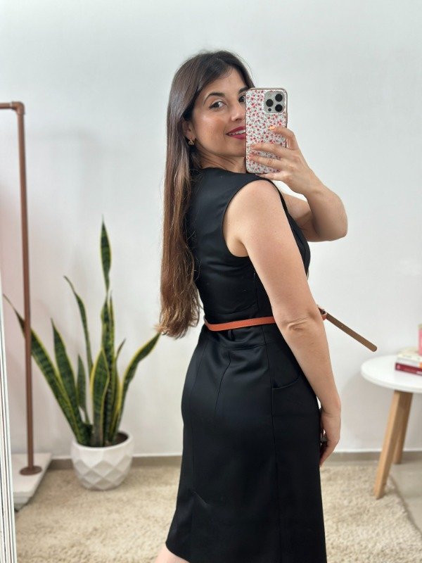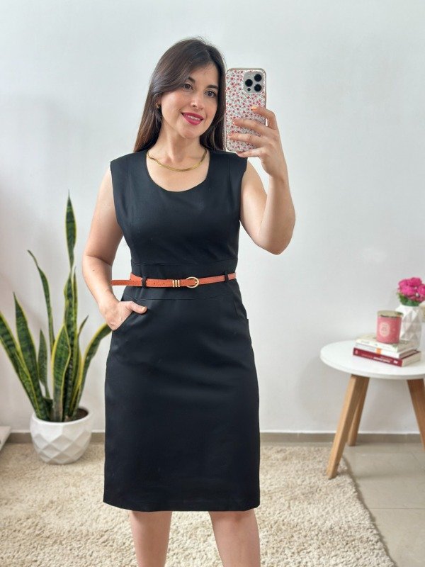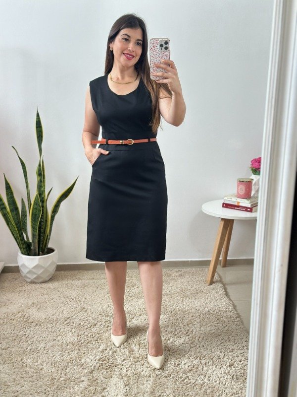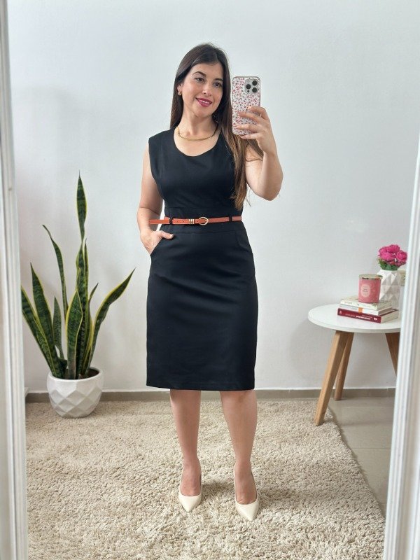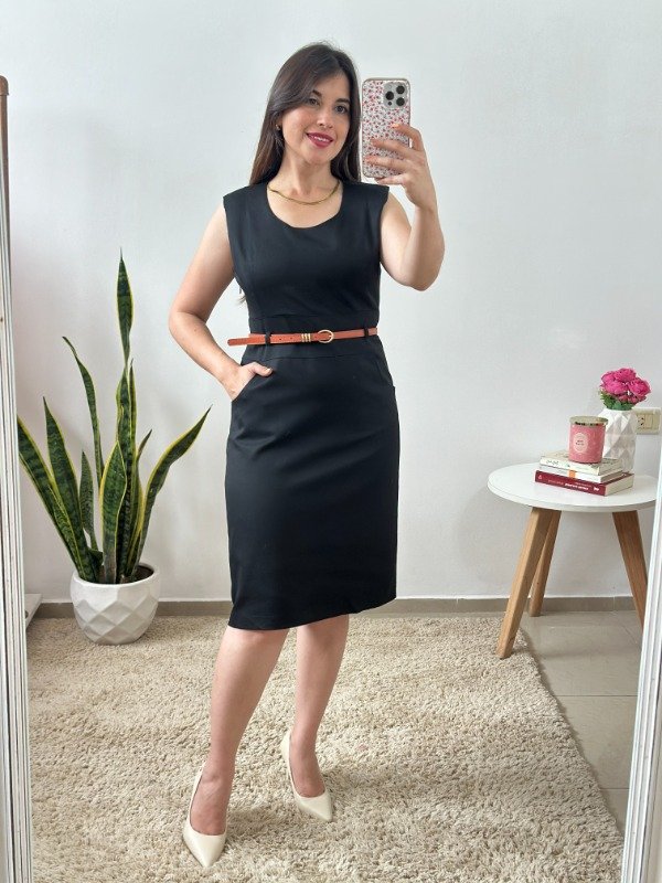 Precioso vestido importado de calidad increíble, completamente forrado en su interior. Elaborado en material con spandex. Con bolsillos en falda, pasacinto y corte en cintura. Trae cierre invisible en el lateral.