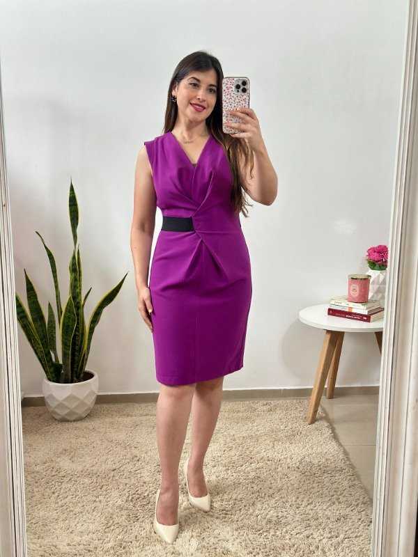Precioso vestido importado de calidad increíble, completamente forrado en su interior, con cierre visible en espalda como detalle, escote cruzado y simil faja. Un modelo sumamenete original y femenino.
