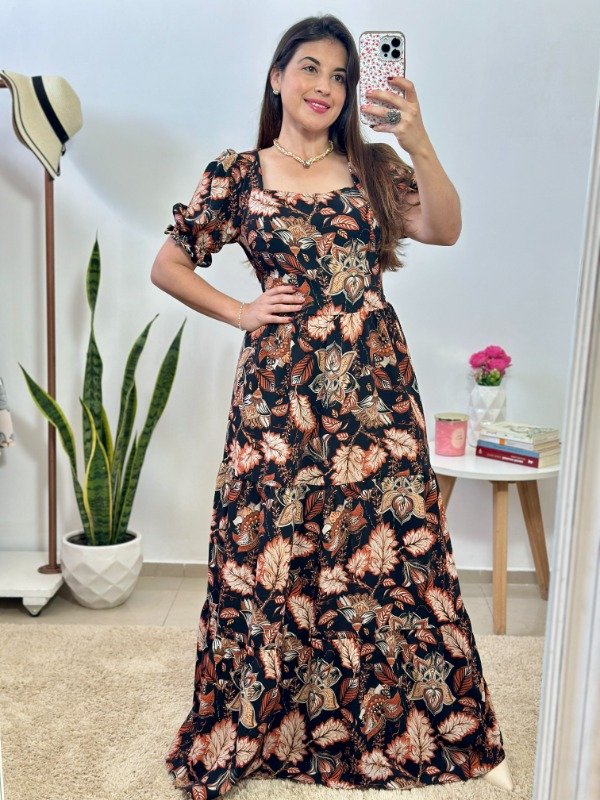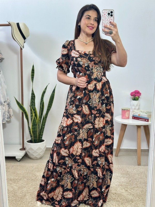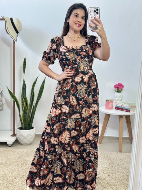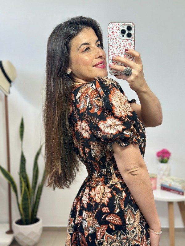 Dress 10 - Importado (Estampa negra+flores)- Talle único (Busto hasta 105)