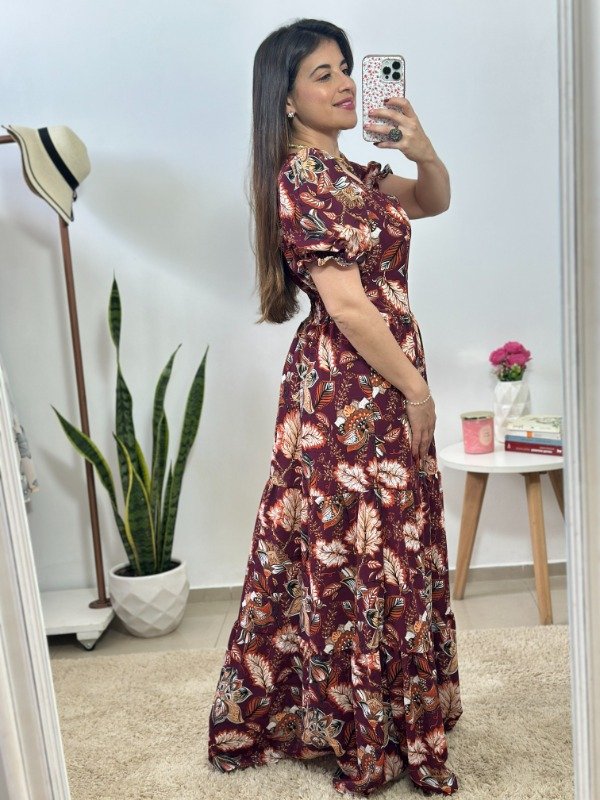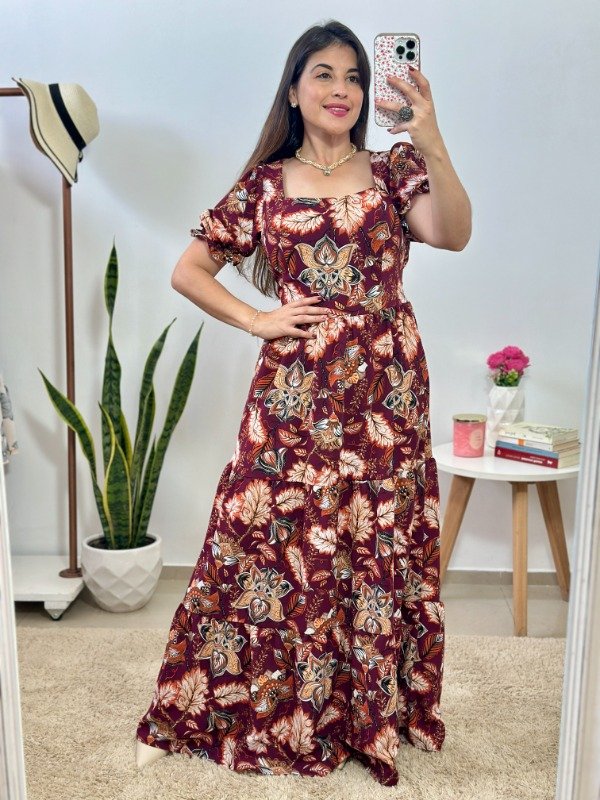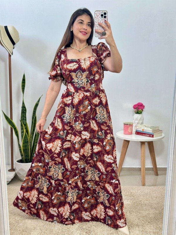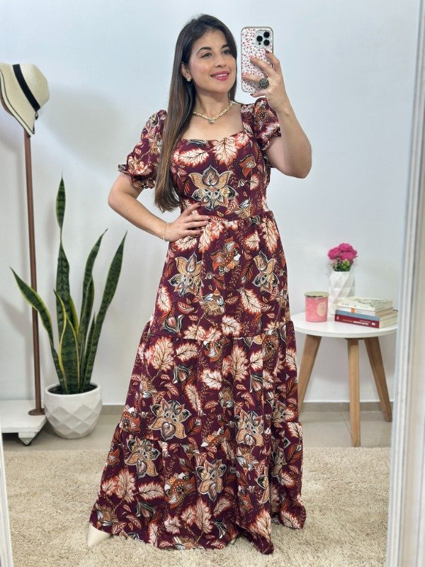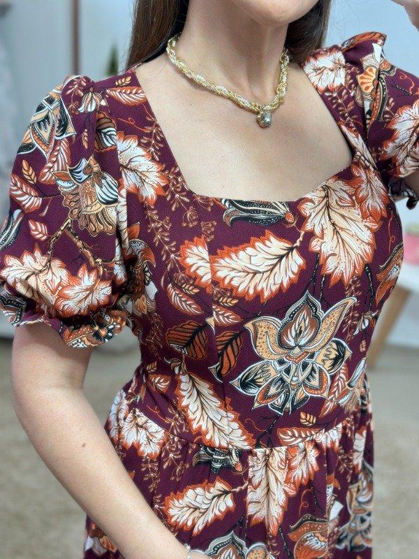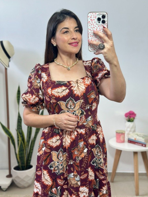 Dress 11 - Importado (Estampa bordó+flores)- Talle único (Busto hasta 105)