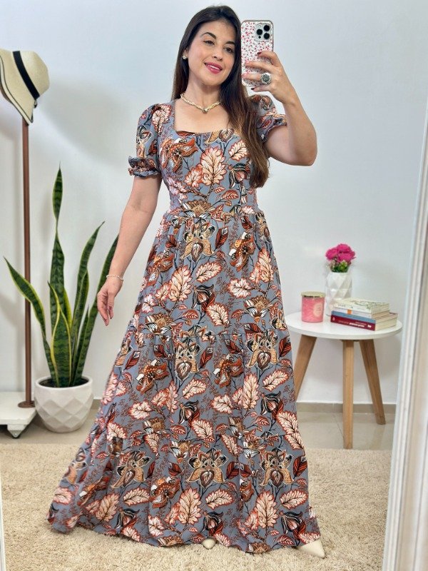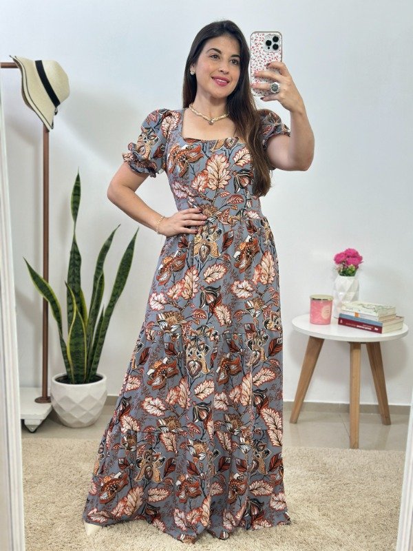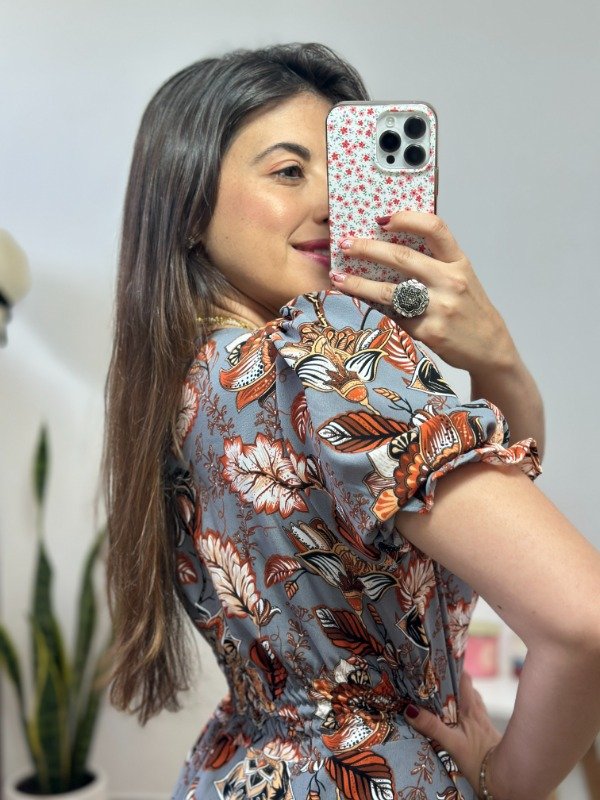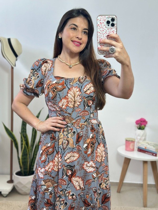 Dress 12 - Importado (Estampa gris+flores)- Talle único (Busto hasta 105)