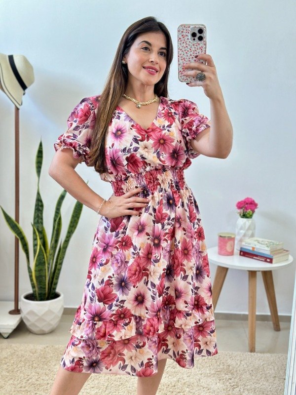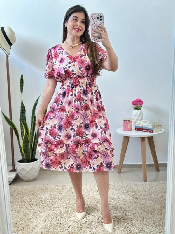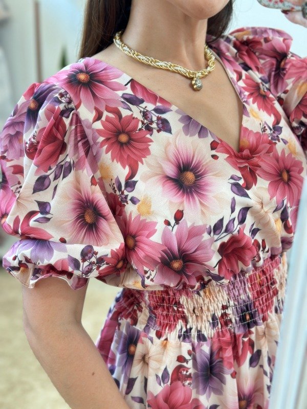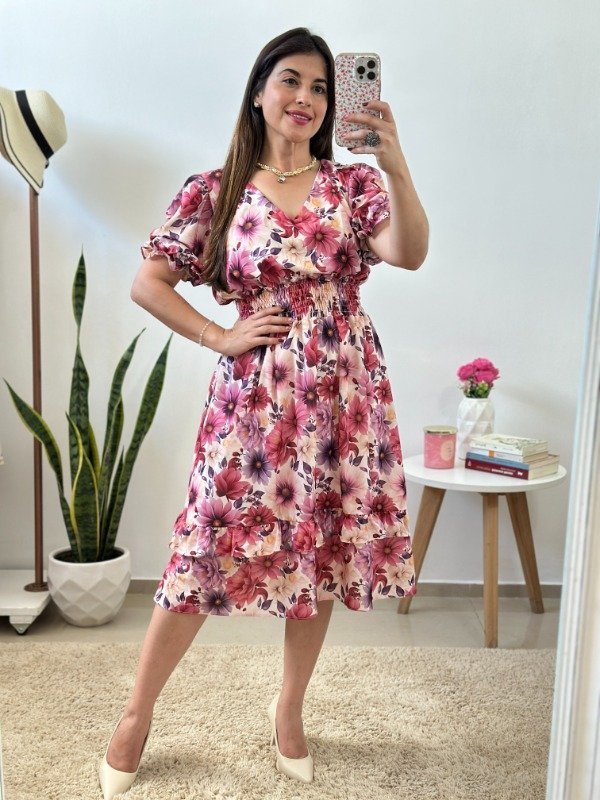 Precioso vestido importado, de excelente calidad. Con escote en V, elástico en mangas, enagua en su el interior de la falda y fruncido completo en cintura. Sin dudas que las estampas que tiene este vestido son INCREÍBLES!