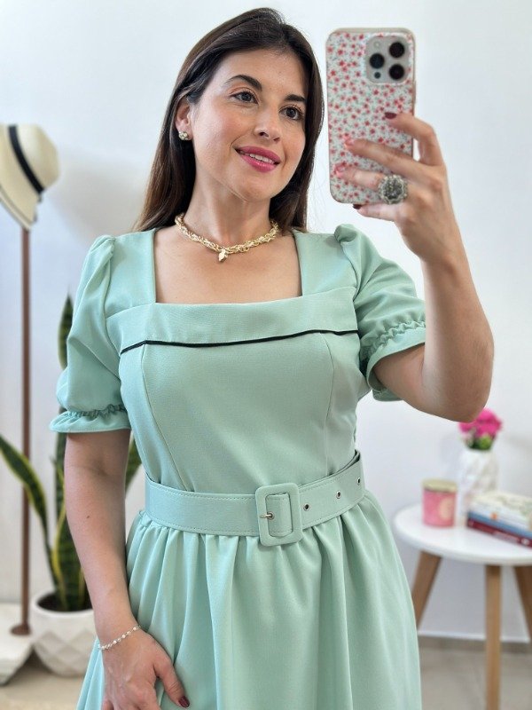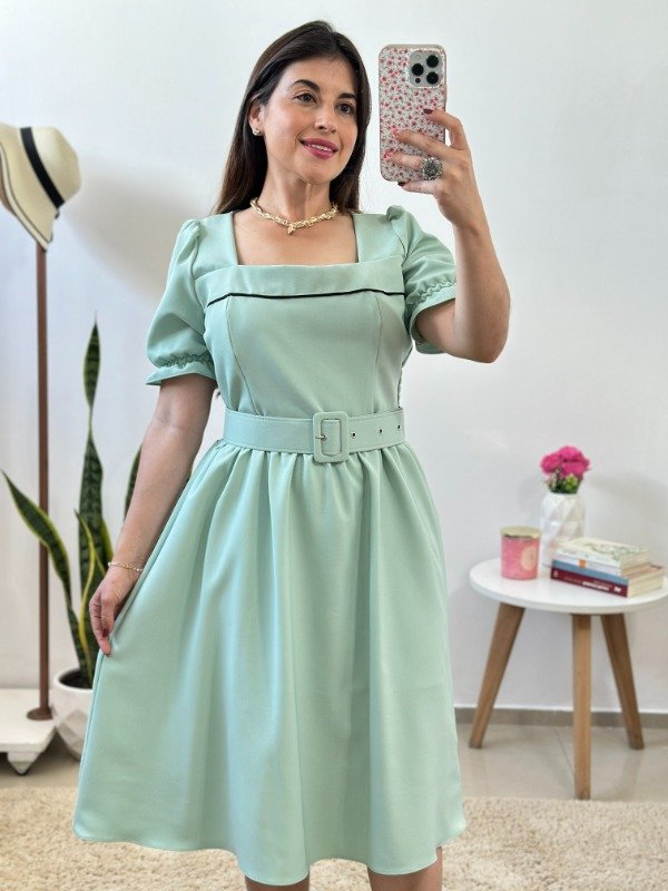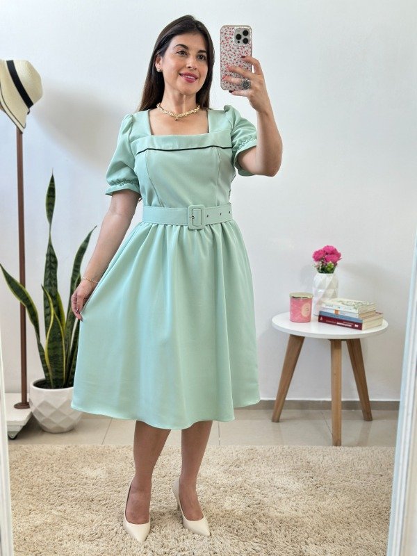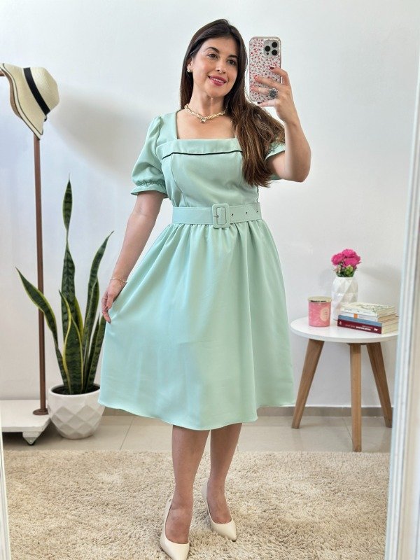 Precioso vestido importado elaborado en crep de increíble calidad. Con detalle de bies en parte delantera, fruncido en cintura, falda evasé, enagua en su interior y cinto desmontable.