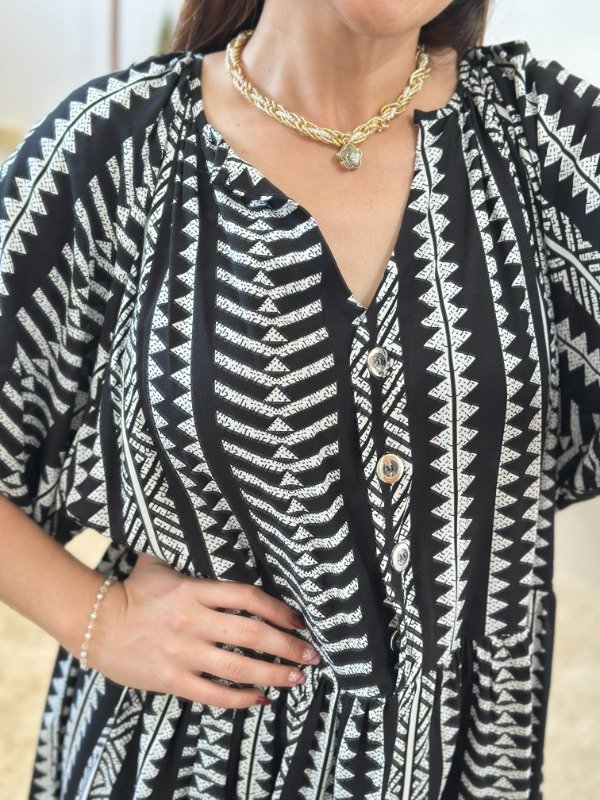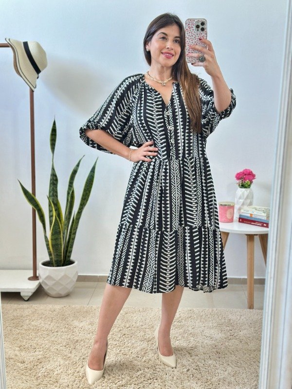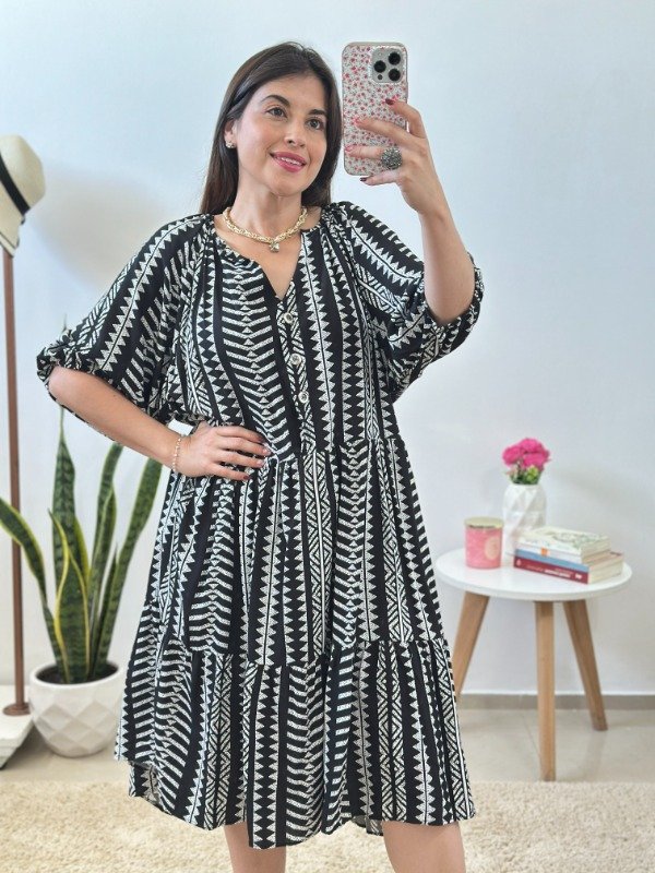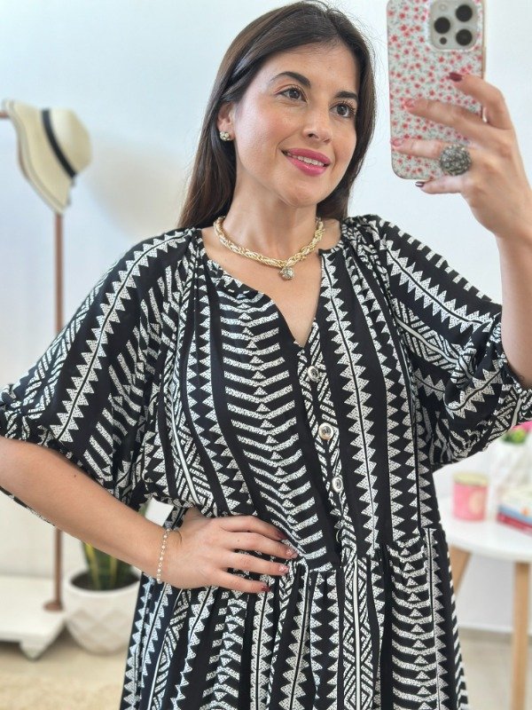 Con botones funcionales en la parte delantera, mangas amplias, distintos cortes en el largo y enagua en su interior.