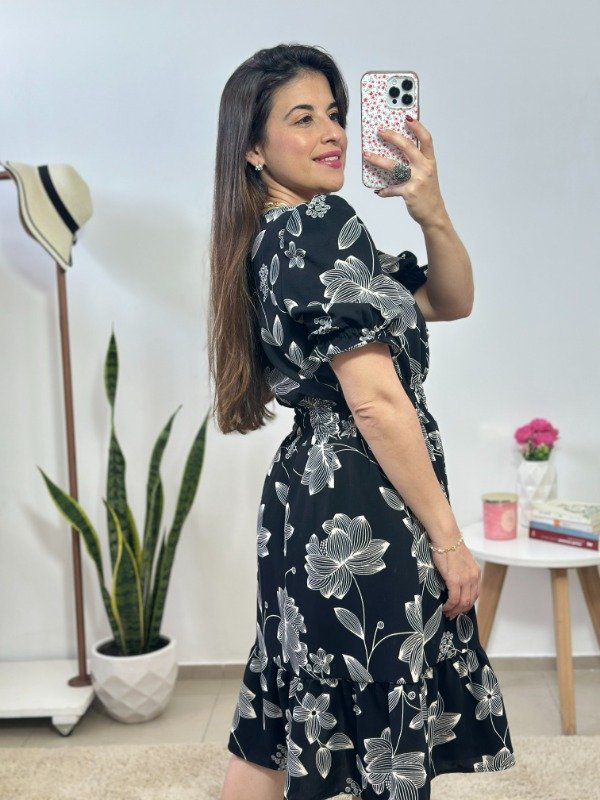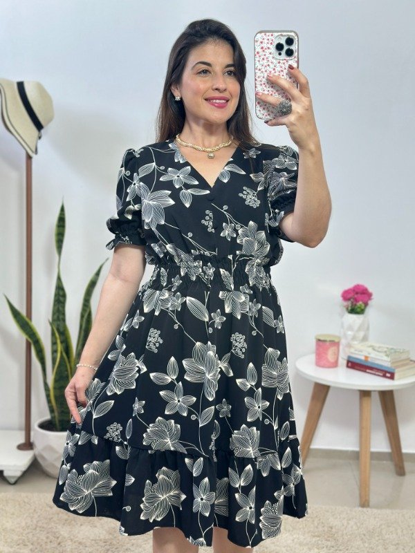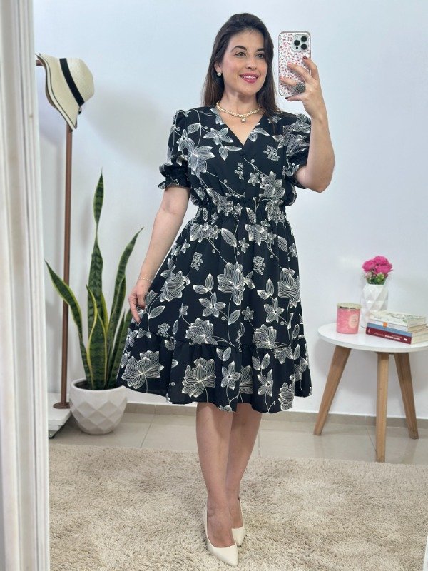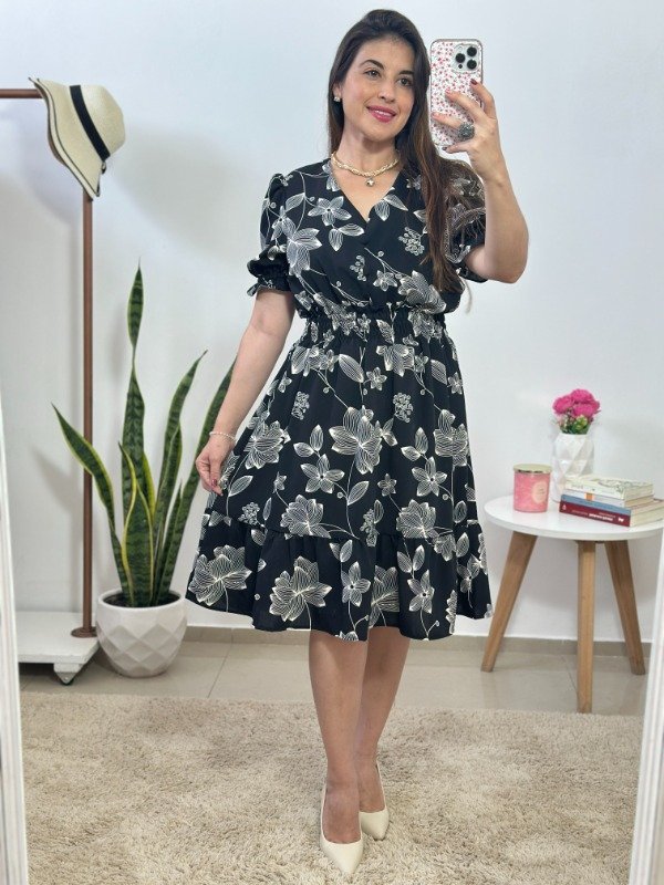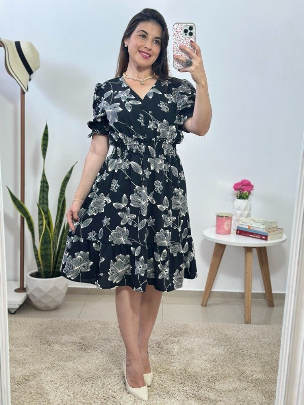 Precioso vestido importado elaborado en crep de increíble calidad. Con detalle de escote en V, mangas con elástico y amplitud, botones forrados como decoración, fruncido completo en cintura y volado en la parte inferior de la falda que le brinda amplitud. En su interior trae enagua.