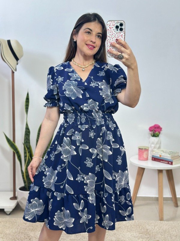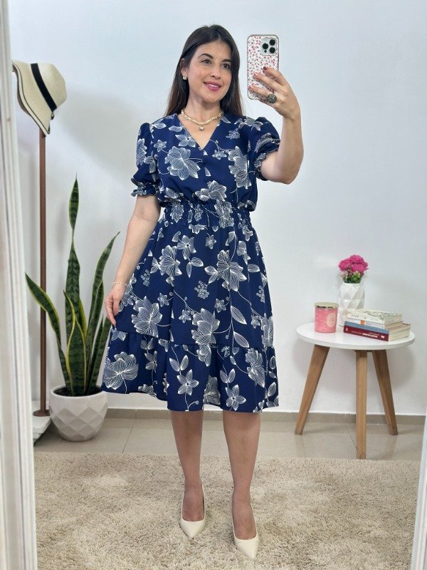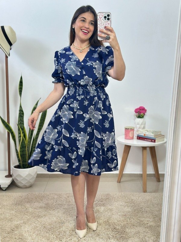 Precioso vestido importado elaborado en crep de increíble calidad. Con detalle de escote en V, mangas con elástico y amplitud, botones forrados como decoración, fruncido completo en cintura y volado en la parte inferior de la falda que le brinda amplitud. En su interior trae enagua.