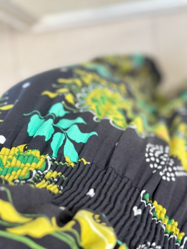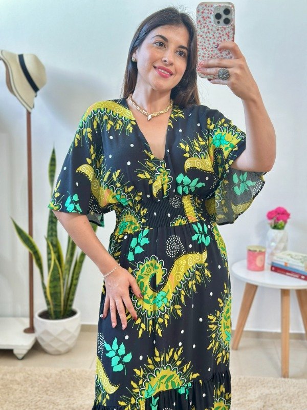 Precioso vestido importado, elaborado en material simil lino con leve spandex. Con escote en V, tazas soft en el busto, cintura completamente fruncida y enagua en su interior.