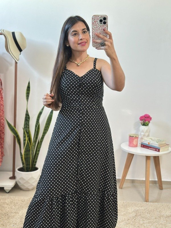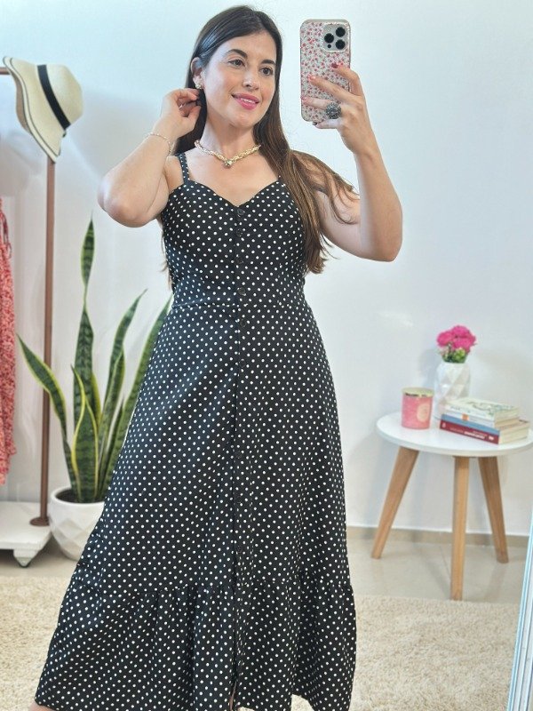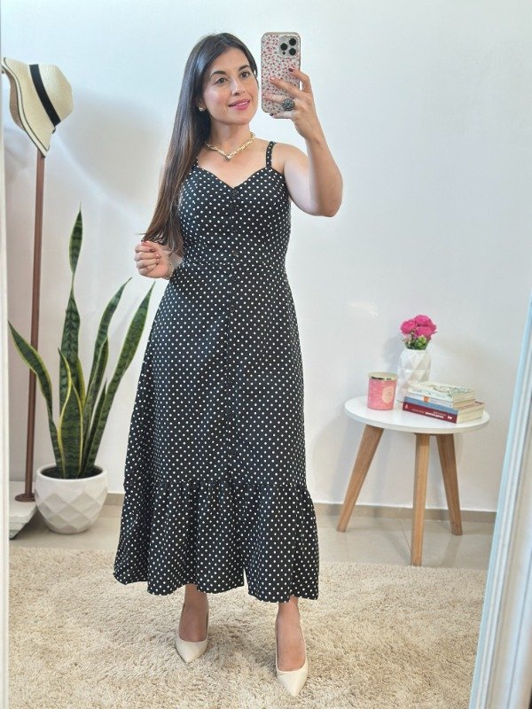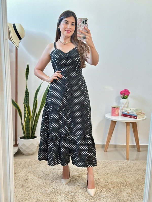 Precioso vestido importado, con tiras regulables, tazas soft en el busto, espalda completamente fruncida y botones funcionales en todo el delantero central. Con enagua en su interior.